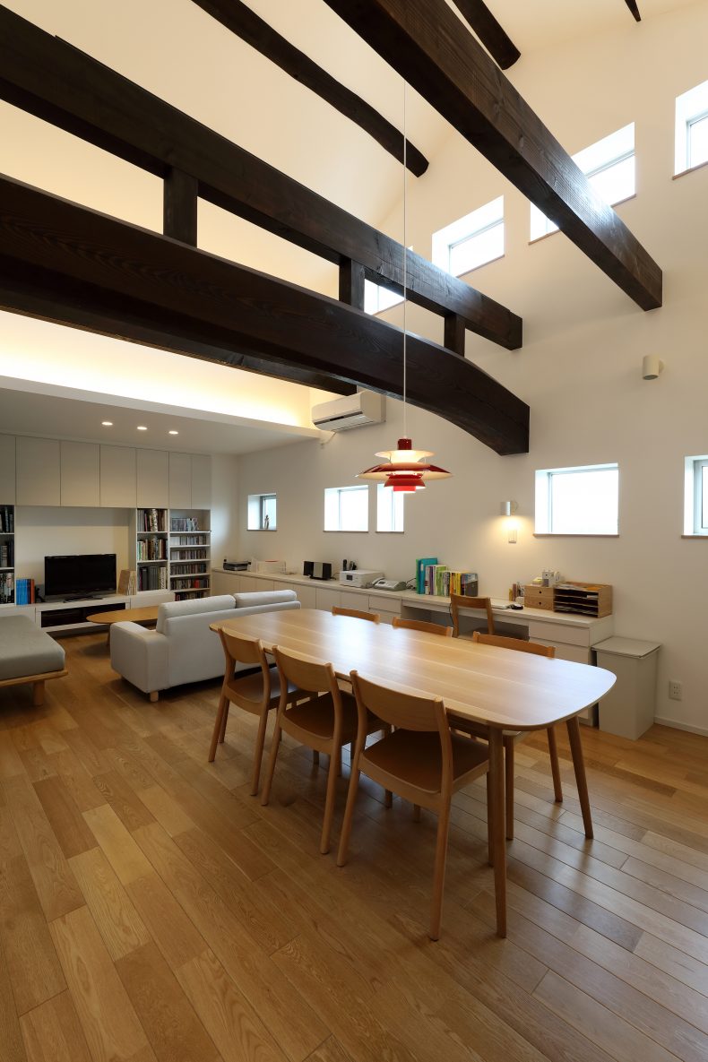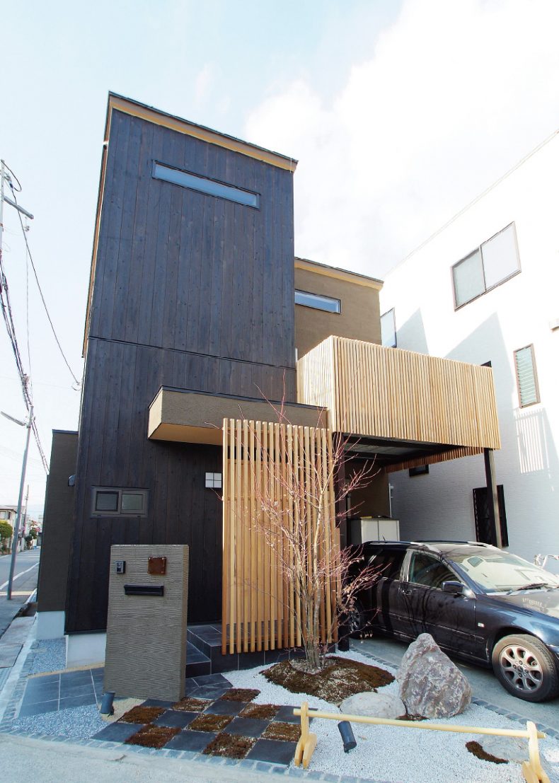建物種別 一戸建て リフォーム箇所 全面、キッチン、浴室、洗面化粧室、トイレ、リビング・ダイニング、寝室・居室、玄関、ガーデンスペース・バルコニー・エクステリア、外壁・門まわり 城下町をイメージして、焼き板・櫛引き仕上げの外観に。屋根を架け替えて新しくできた空間は明るいロフトとして活用。