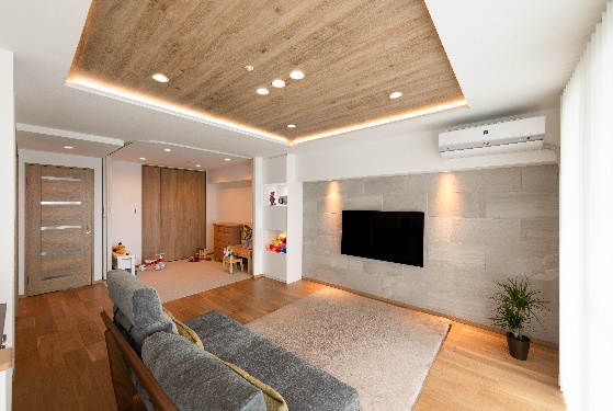 建物種別 マンション リフォーム箇所 キッチン、浴室、洗面化粧室、トイレ、リビング・ダイニング、寝室・居室、玄関、その他 リフォーム価格 900万円 工期 62日 お子様やペットとともに快適に過ごせるよう生活動線や使い勝手を意識して間取り変更を行いました。リビングの一部の天井を下げて雰囲気よく仕上げました。