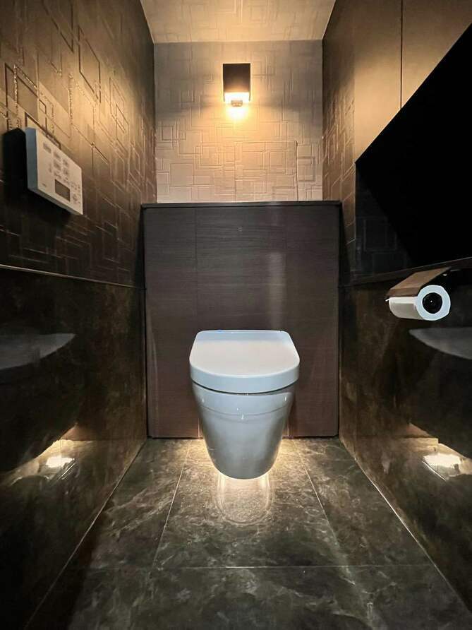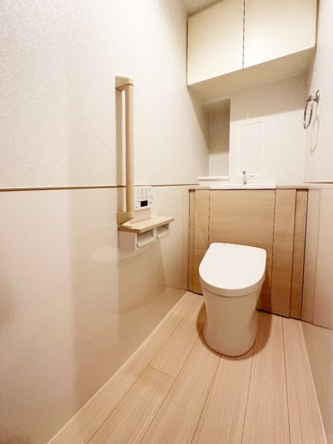 建物種別 マンション リフォーム箇所 トイレ リフォーム価格 50万円 工期 1日 収納付きトイレで、掃除道具やストック用品、配線や給水管なども収納でき室内がスッキリ。腰壁パネルを施工しお手入れもしやすくなり清掃性が向上しました。