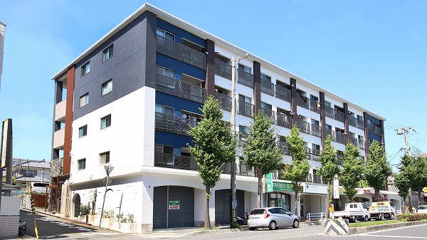 建物種別 マンション リフォーム箇所 外壁・門まわり、その他 築43年の賃貸マンションの外壁の大規模リノベーション事例です。空室対策の成果を上げるために、外観とエントランスのイメージアップをご提案させていただきました。