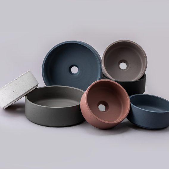 「KAWARABACHI」建築現場で出た廃材「瓦」を粉砕して陶土に混ぜ込み、再活用した信楽焼の手洗い鉢。自然素材のぬくもりと、約150年続く窯元の繊細な職人技が織りなす、唯一無二の美しさにこだわりました。