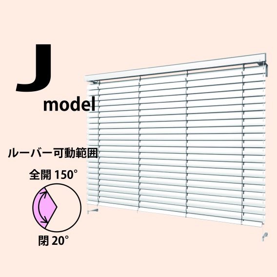 Jモデルは、室内側のクランク式ハンドルで操作する手動タイプで、誰でも簡単にルーバーの角度を20°~150°の範囲で自由に調整できます。ルーバーの収納ケースがないすっきりしたデザインです。