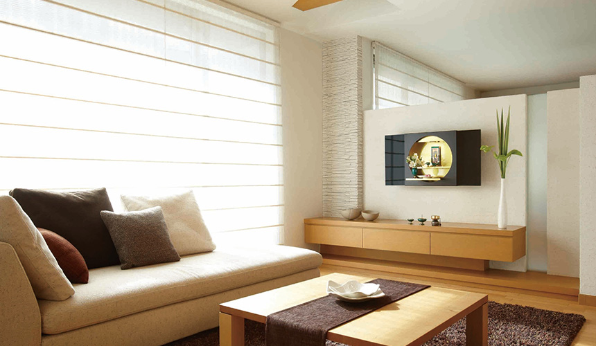 カーテン以外のアイテムもオーダーできます。ブラインドはインテリアもすっきりした印象に。